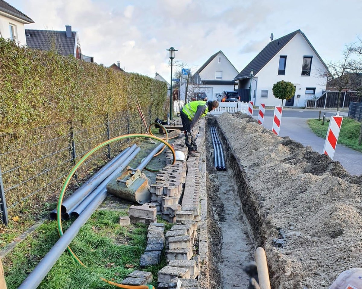 Wir realisieren professionellen Leitungsbau zuverlässig in offener oder geschlossener Bauweise. Ob durch klassisches Aufgraben oder grabenlose Verfahren wie Spülbohrungen: Wir passen die Methode individuell an die Gegebenheiten vor Ort an. So verlegen wir Versorgungsleitungen präzise, effizient und mit minimaler Beeinträchtigung für Umwelt und Umfeld. Mit moderner Technik und langjähriger Erfahrung sorgen wir für sichere Verbindungen heute und in Zukunft.
